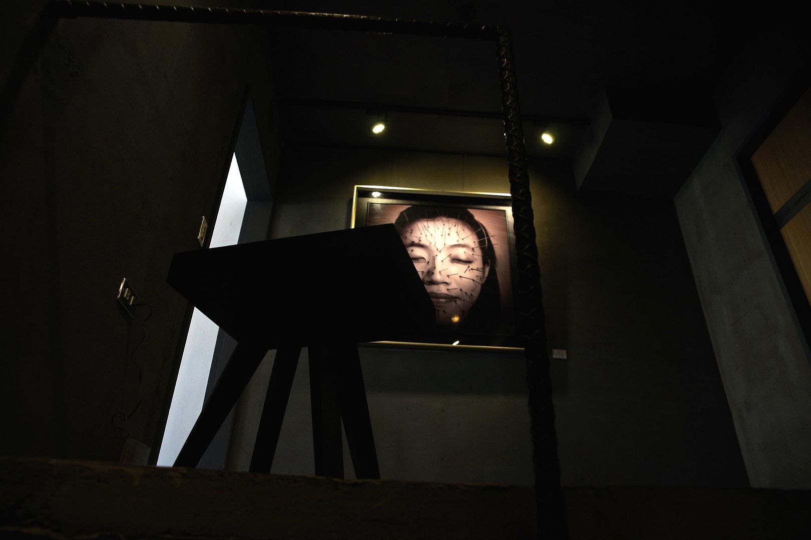 這家咖啡廳入口處的用色非黑即白,妝點著粗淺不一的簡單線條。他1F店面下充斥著時尚的包包服飾鞋子,這些年輕流行的元素和這充滿童趣的畫作相互呼應著,一點也不突兀。遠遠的不經意的一撇,還會以為這是哪一家潮服服飾的入口呢! 走近點一看才發現,招牌上面寫著「 Somebody 」(譯: 任何人),都可以「 Having my drink,having my dream. 」(譯: 擁有這杯飲料和我的夢想)。除了門口的彩色立牌說明它是一家供餐的咖啡店,其他的畫作就像是異世界的展覽會場,一階一階黑白格子畫,像是要將我們領進異度空間,吸入另一個完全不同的藝想世界裡。